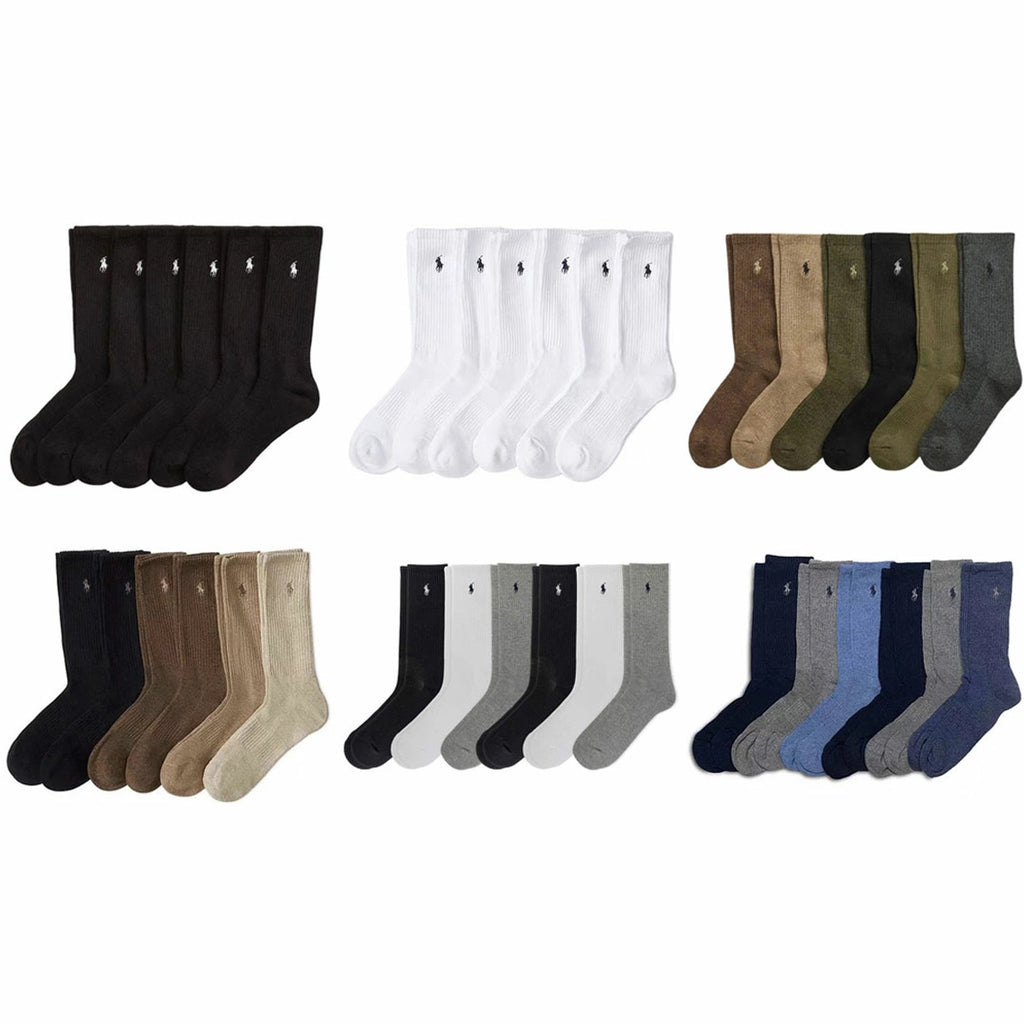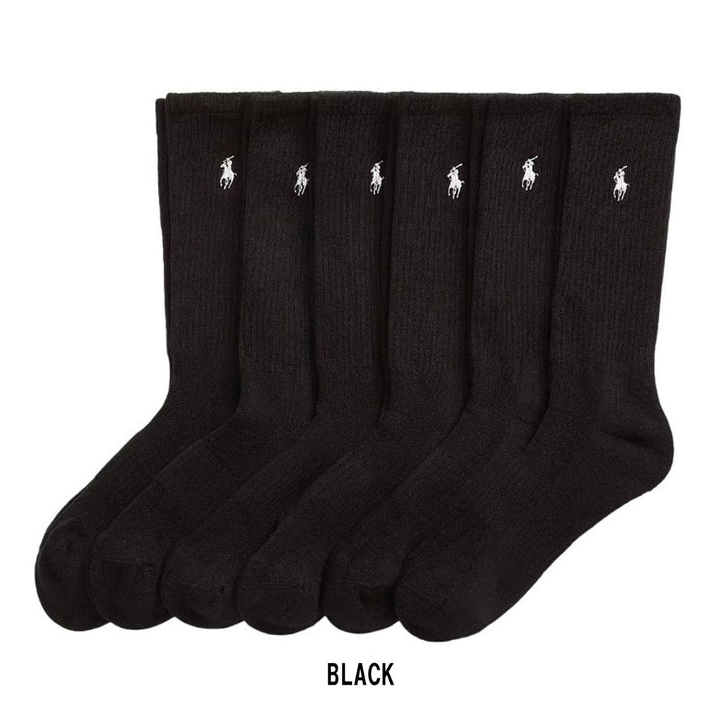 ラルフローレン Ralph Lauren 靴下 クルーソックス クッション アソート ポニー ロゴ 刺繍 6枚組 6足セット 821480PKZ3 メンズ ブラック+グレー+ホワイト+ブラウン+マルチ