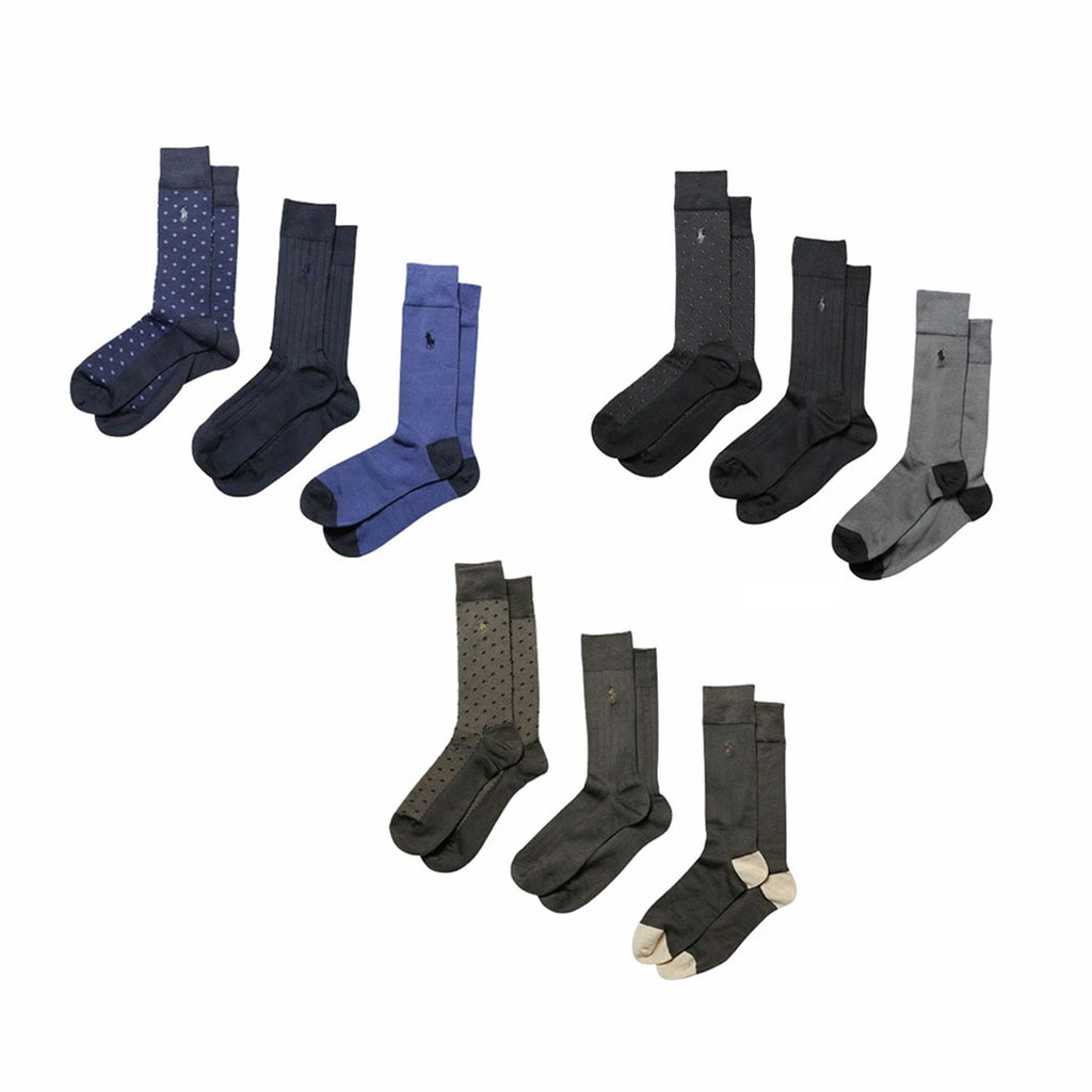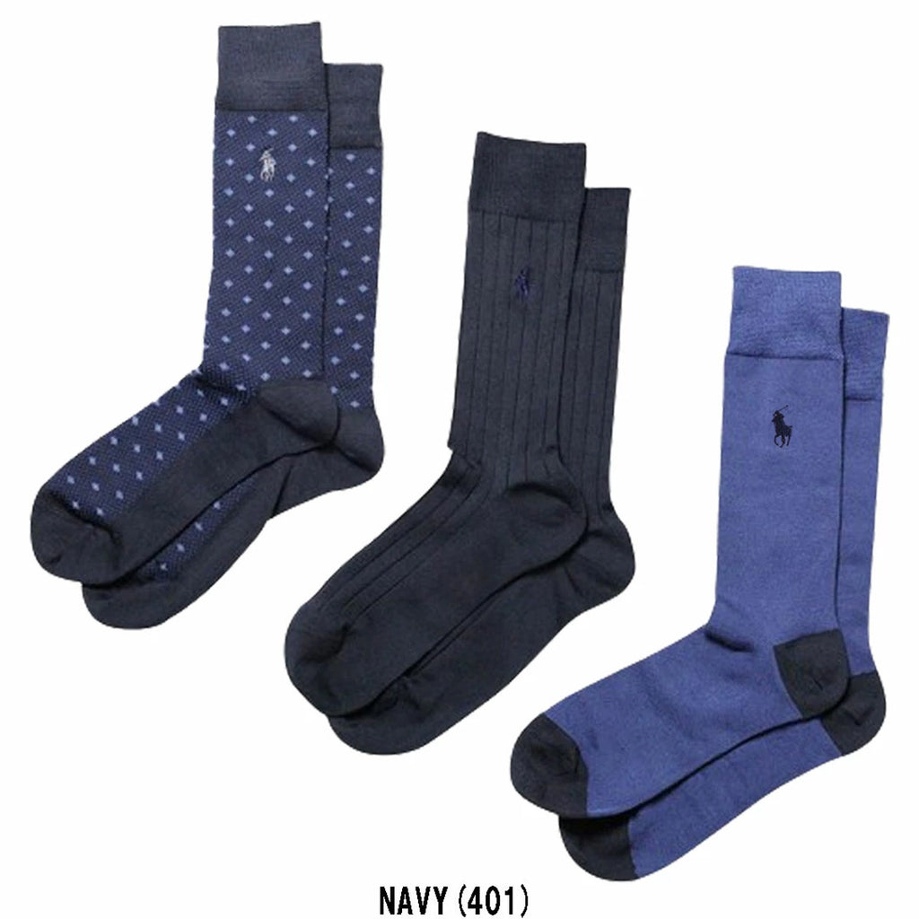 ラルフローレン Ralph Lauren 靴下 くつ下 ソックス ビジネス 3足セット スーパーソフト 抗菌 水玉 8613PK メンズ ブラック+ネイビー+ブラウン