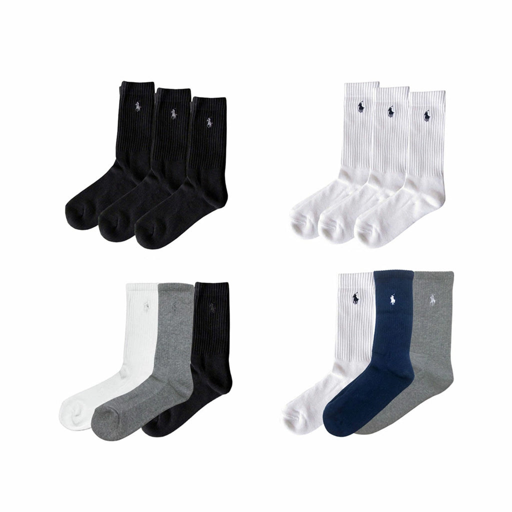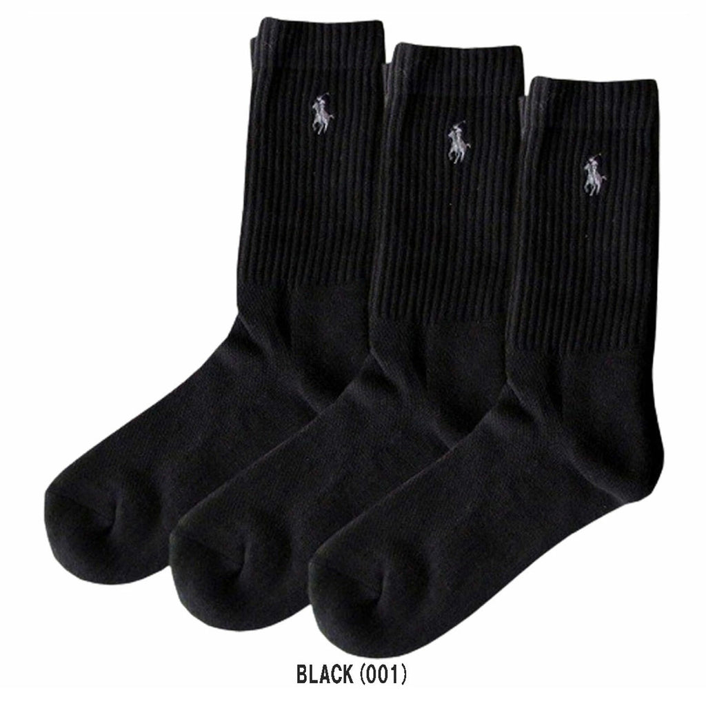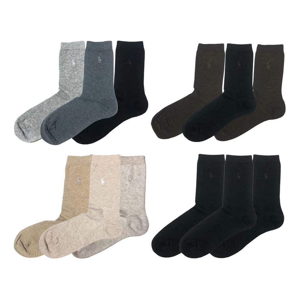 ラルフローレン Ralph Lauren 靴下 ソックス レディース クルー ワンポイント カジュアル 3足セット アソート 7310PK レディース ブラック+グレー+ホワイト+ネイビー