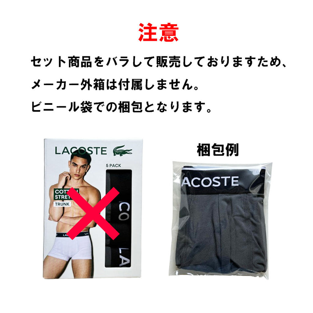 ラコステ LACOSTE 下着 ボクサーパンツ 前閉じ ストレッチ トランク ロゴ バラ売り 単品 1枚 5H1292 XB4 メンズ グレー 綿 コットン