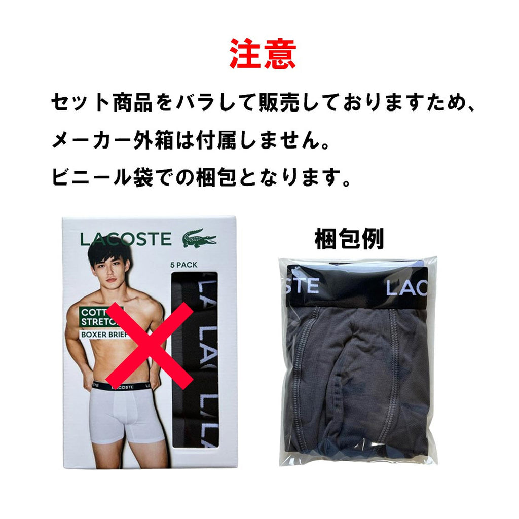 ラコステ LACOSTE 下着 ボクサーパンツ ボクサーブリーフ ストレッチ 5枚セット ロゴ お買い得 パック 前閉じ 6H1301 XB4 メンズ グレー 綿 コットン