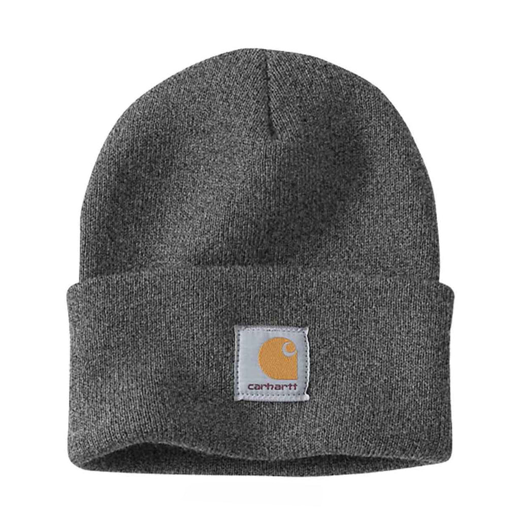カーハート CARHARTT 帽子 ニットキャップ ビーニー ニット帽 無地 ワンポイント 定番 ロゴ アクリルワッチ リブニット ストリート カジュアル USA A18 メンズ レディース ユニセックス グレー