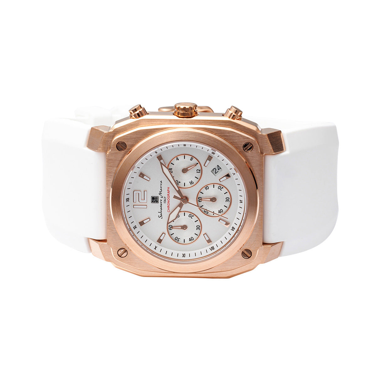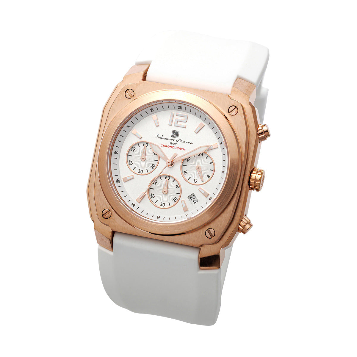 サルバトーレマーラ Salvatore Marra 腕時計 クオーツ SM24109 PGWH ウォッチ ラバーベルト クロノグラフ アナログ表示 日常生活防水 紳士用 メンズ ホワイト+ゴールド 国内正規品