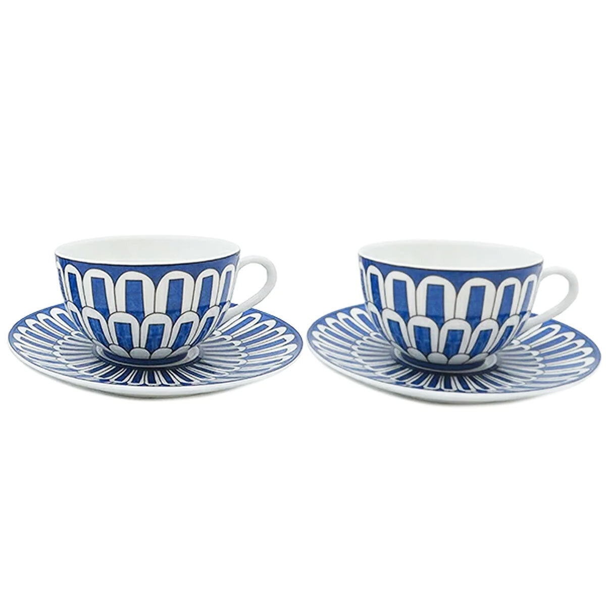 エルメス 食器 ペア ティーカップ&ソーサー HERMES 030016P TASSE A THE ET SOUCOUPE BLEUS DAILLEURS No.2 ブルーダイユール ティー カップ&ソーサー セット BLEUS ブルー+ホワイト