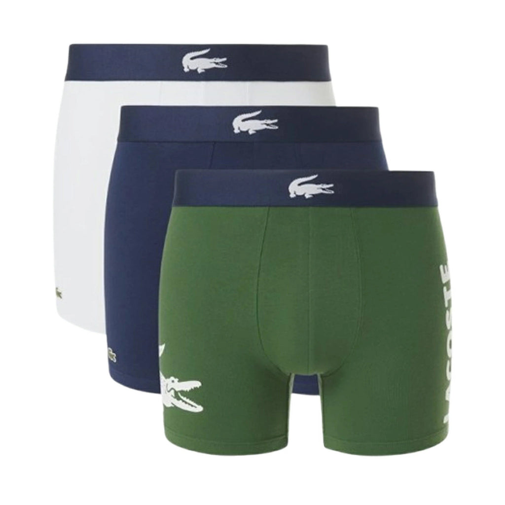 ラコステ LACOSTE ボクサーパンツ ストレッチ 3枚セット お買い得 パック 前閉じ 下着 5H1291 P52 メンズ グリーン+ネイビー+ホワイト