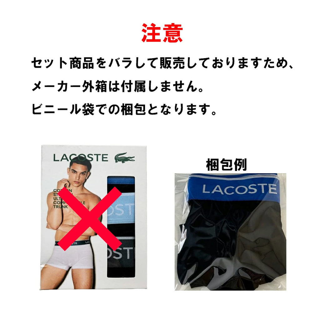 ラコステ LACOSTE ボクサーパンツ ストレッチ コットン トランク 3枚セット お買得パック 下着 5H8394 ILY メンズ ブラック+ライトブルー+ホワイト