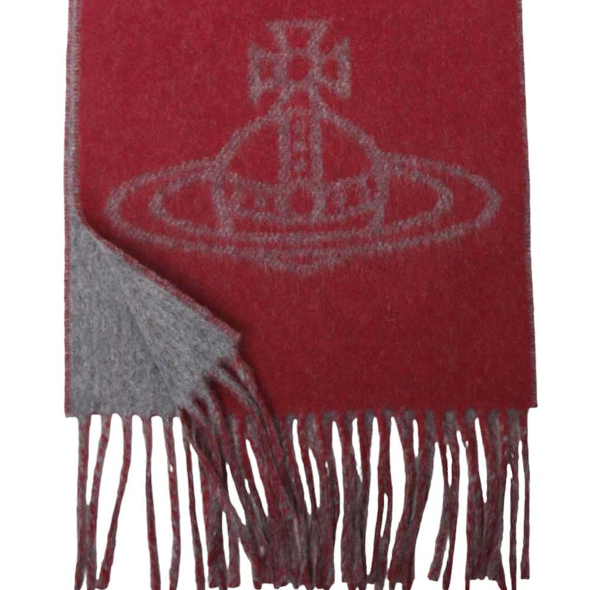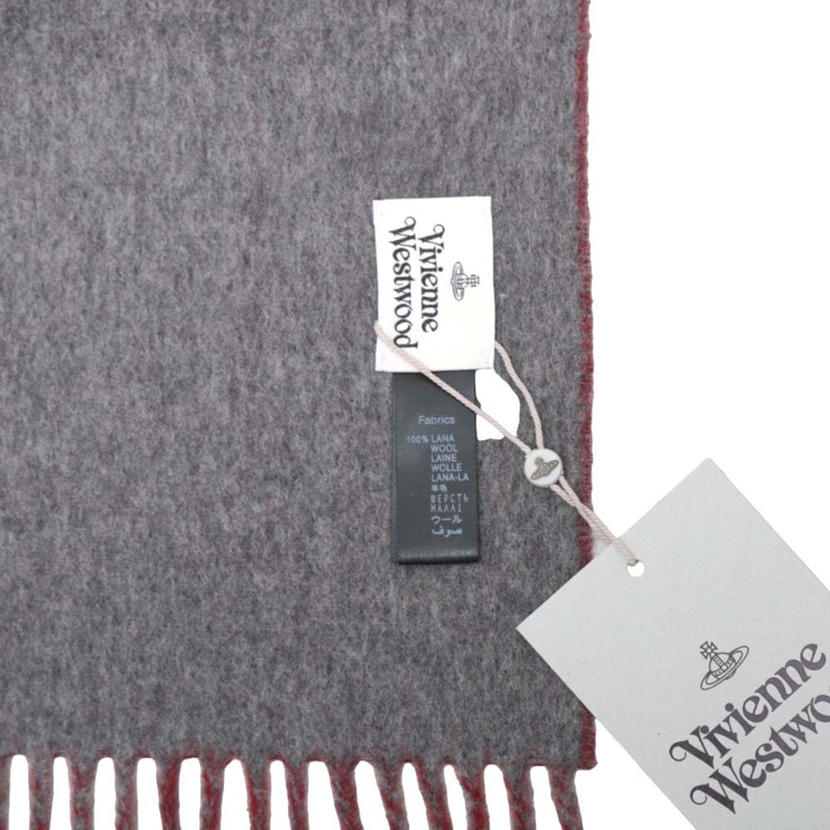 ヴィヴィアンウエストウッド Vivienne Westwood マフラー ビッグオーブ ロゴ ストール ウール 25-W00ZH-H411 レディース メンズ ユニセックス レッド+グレー