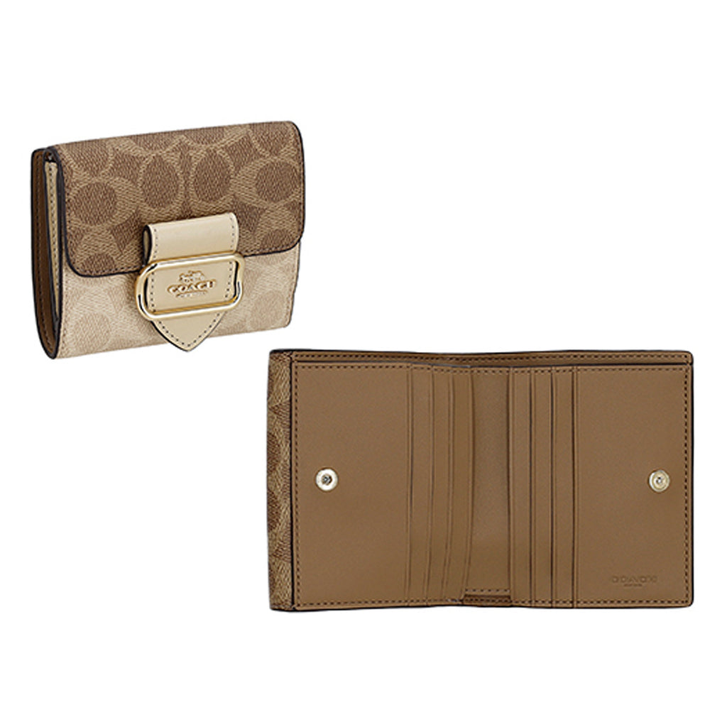 コーチファクトリー COACH FACTORY 財布 二つ折り財布 折りたたみ財布 小銭入れ付き CCQ09 IMXI9 レディース ブラウン+ベージュ