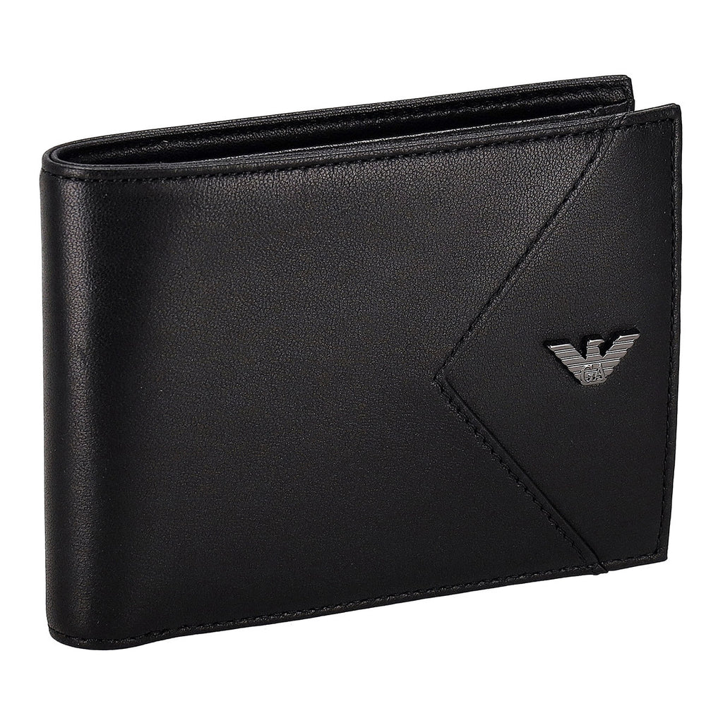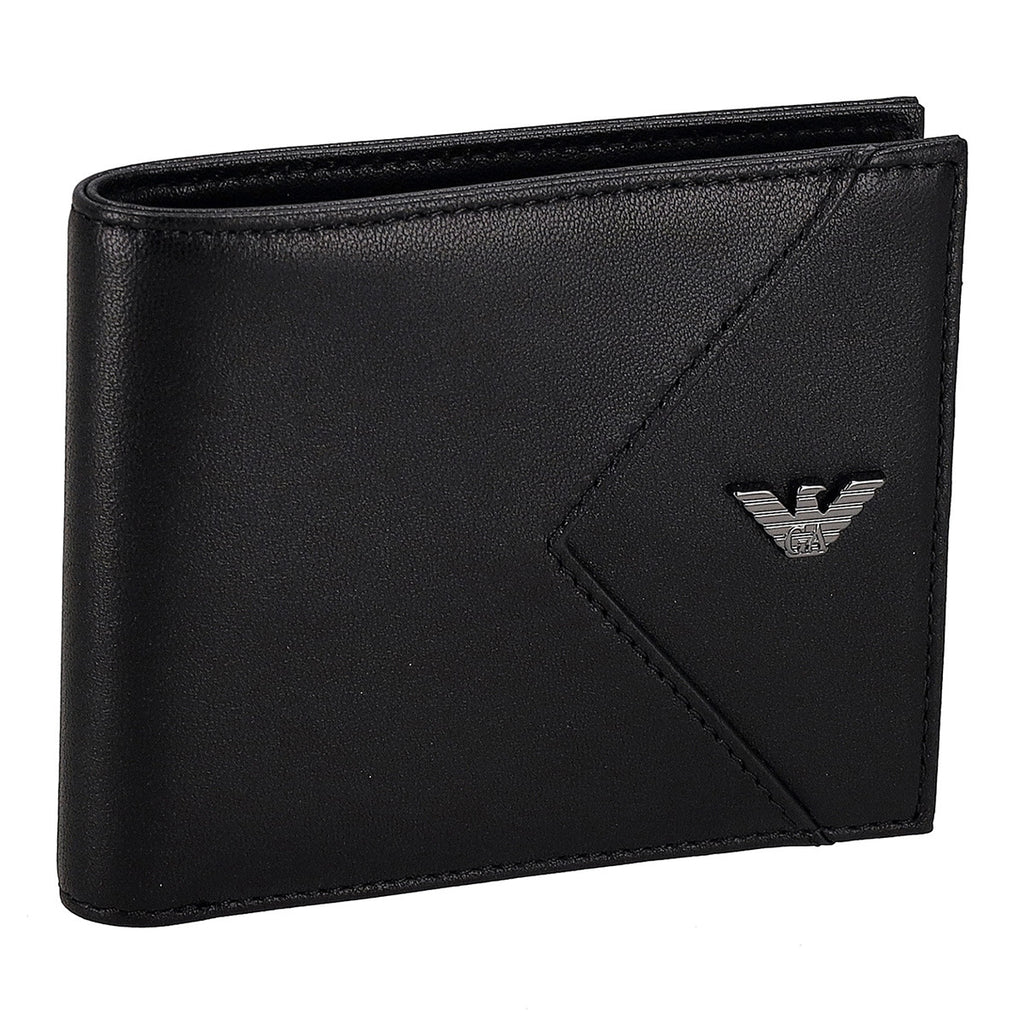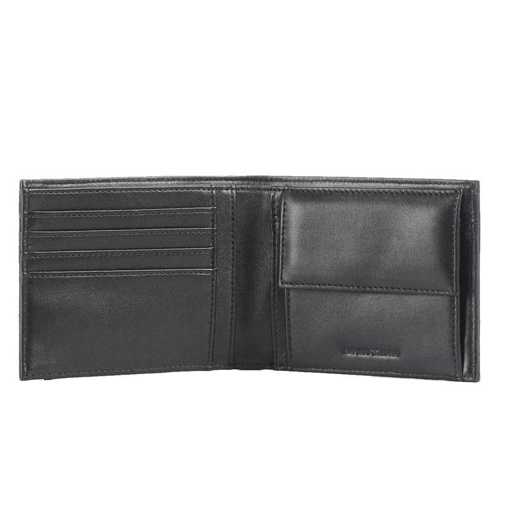 エンポリオアルマーニ EMPORIO ARMANI 財布 二つ折り財布 折りたたみ財布 小銭入れ付き EM003601 AF19365 UC001 幾何学ディテール メンズ ブラック 本革 レザー