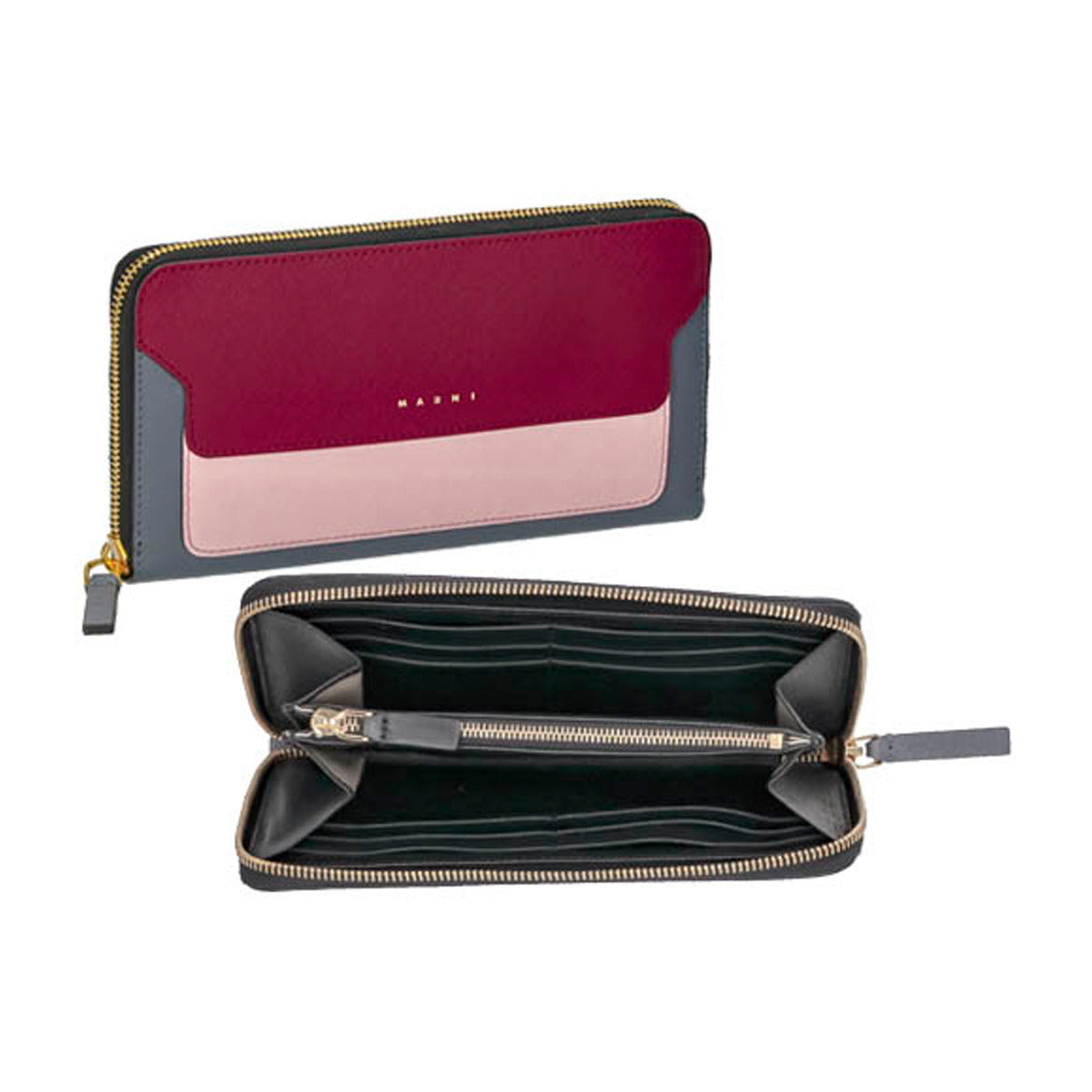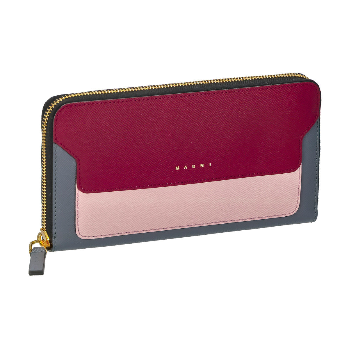 マルニ MARNI 財布 長財布 ラウンドファスナー長財布 小銭入れ付き PFMOE11U11 LV520 Z437N バイカラー レディース レッド+ピンク+グレー 本革 レザー