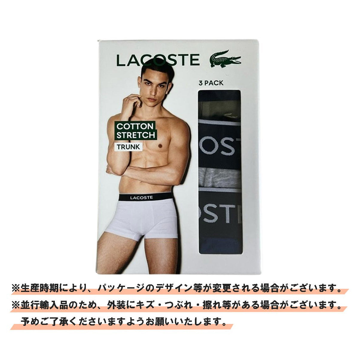 ラコステ LACOSTE ショート ボクサーパンツ お買い得 3枚セット 前閉じ 下着 5H3411 W3T メンズ グレー+レッド+ネイビー